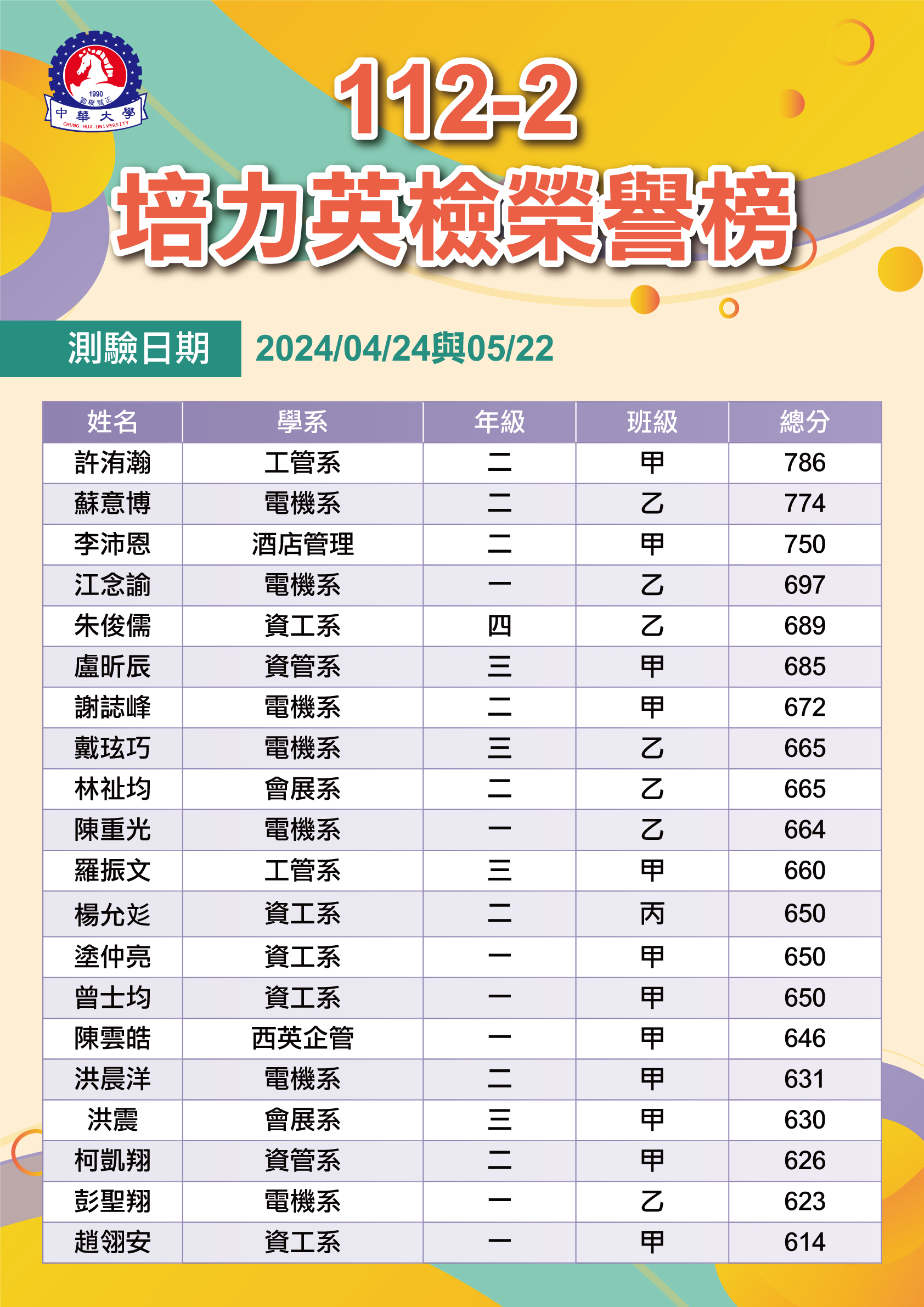 112-2多益測驗榮譽榜