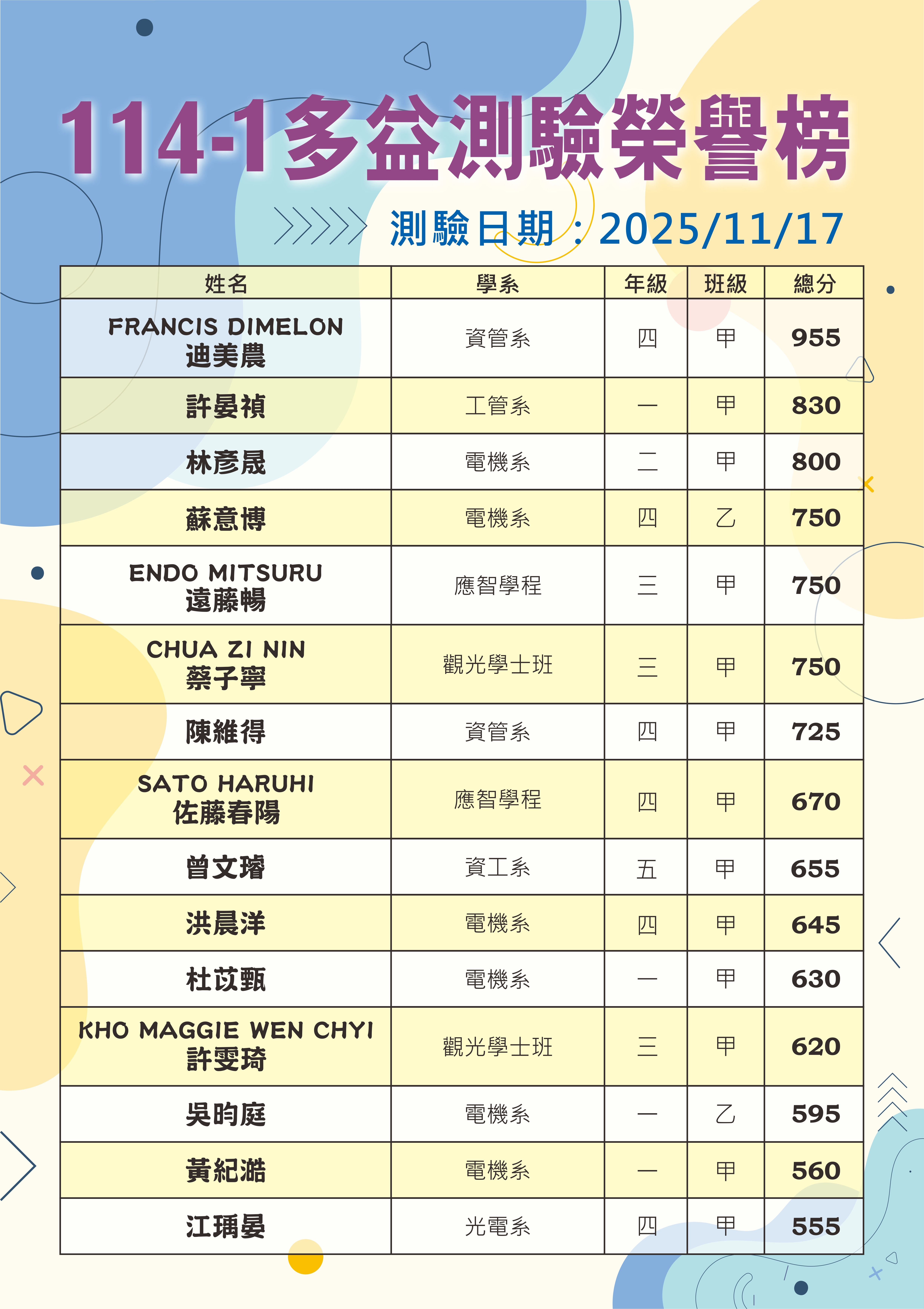 114-1多益測驗榮譽榜